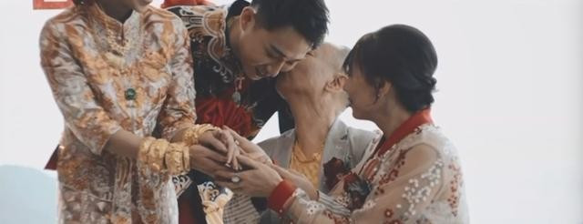 金器不只是炫富,而是粤式婚俗里“戴满金、福成双”的象征。对比之下,两位岳父岳母只着普通西装礼裙,反显克制。敬茶时,因两度中风仍拄杖而立的容父哽咽吻子,场面温情胜过珠光宝气,也提醒众人:豪礼再亮,也不及亲人在侧。