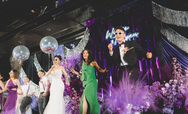 夜宴铺了23桌,DJ在水晶吊灯下混音,伴郎团戴墨镜跳唱进场。容天佑由白转黑西服,新娘则换深V鱼尾裙,两人合唱粤语快歌,明星宾客举机打光。看似奢华的舞台,其实只是酒店自带灯光加伴郎临时排舞,预算倒不出奇,关键贵在场地租金与翡翠首饰。